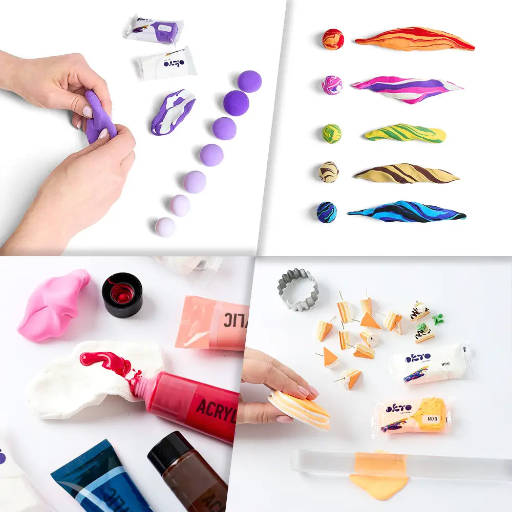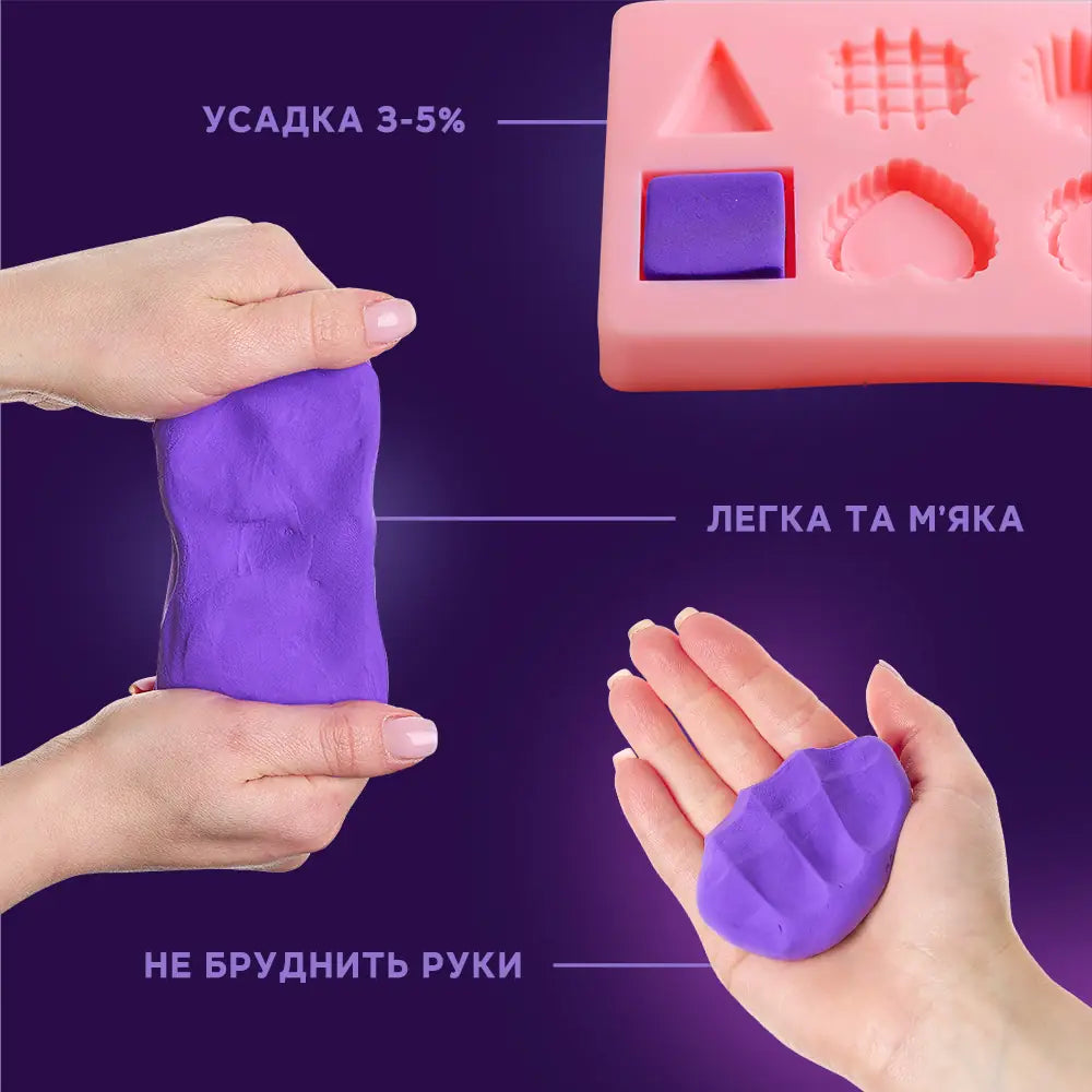 Цей набір допоможе тобі втілити в життя будь-які ідеї. Працюй стеком, розкатуй, нанось текстури, користайся молдом. А потім розфарбовуй готові шедеври так, як підказує тобі натхнення.