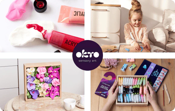 OKTO Sensory Art – міжнародна інноваційна компанія, яка розвиває внутрішній світ людей у більш ніж 30 країнах. Ми створюємо набори творчого ліплення та сенсорного розвитку, які допомагають відкрити для себе творчість по-новому.