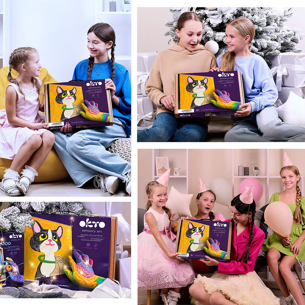 Так, сенсорне мистецтво OKTO рекомендоване Асоціацією арт-терапії як інструмент для покращення психологічного здоров'я, релаксації та творчого розвитку. Арт-терапевти рекомендують наші набори як чудовий спосіб зменшити стрес, заспокоїти розум, покращити концентрацію та заохотити усвідомленість. Вони допомагають розвивати дрібну моторику, яка необхідна для розвитку мовлення та інтелекту. Водночас вони допомагають дітям зосередитися та підтримувати їхню увагу у веселій та грайливій формі.