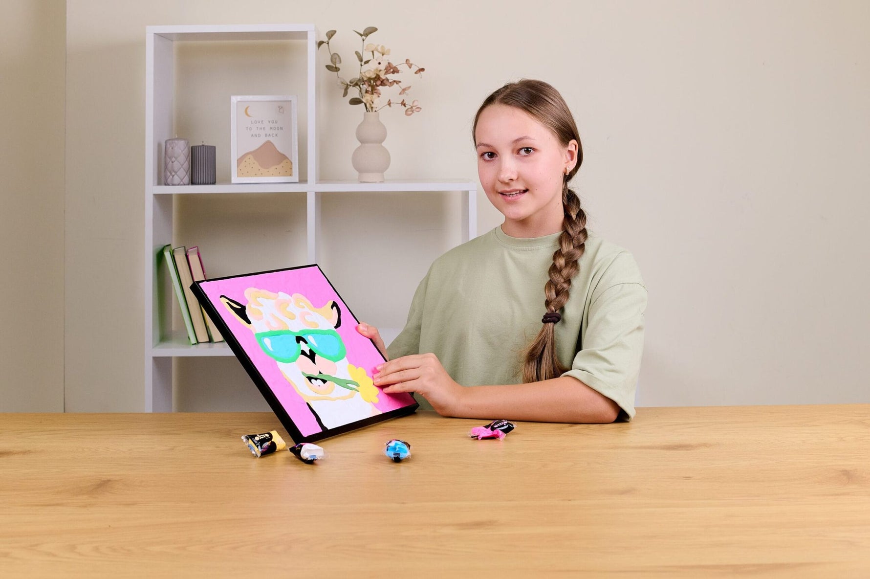 Ціна за одиницю / заВесела лама з яскравим пончиком на шиї — чудовий спосіб познайомити дитину з мистецтвом без пензлів і плям. Набір «Лама» поєднує принцип розмальовки за номерами та ліплення з повітряного пластиліну: малюк заповнює пронумеровані ділянки м’якими кольоровими стіками пластиліну, створюючи рельєфне хутро та кумедні аксесуари. У результаті з’являється об’ємний 3D-сюжет, готовий прикрасити дитячу кімнату чи стати незабутнім подарунком.