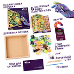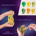 Вибирай колір, з якого хочеш почати, набирай глину пальцями та сміливо нанось на полотно. Створи свій фон, а потім ліпи по шаблону і перенось частини картини на основу. Відчуй, як під твоєю рукою народжується мистецтво.