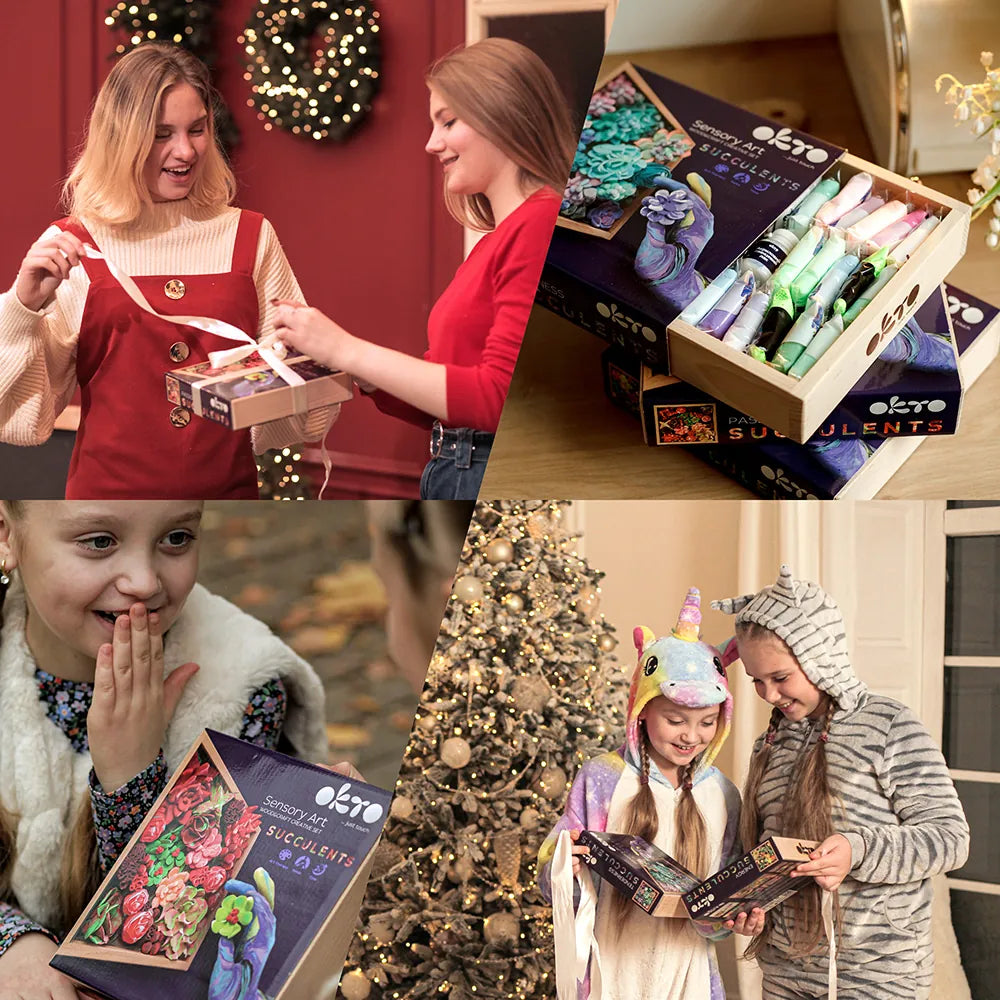 Так, сенсорне мистецтво OKTO рекомендоване Асоціацією арт-терапії як інструмент для покращення психологічного здоров'я, релаксації та творчого розвитку. Арт-терапевти рекомендують наші набори як чудовий спосіб зменшити стрес, заспокоїти розум, покращити концентрацію та заохотити усвідомленість. Вони допомагають розвивати дрібну моторику, яка необхідна для розвитку мовлення та інтелекту. Водночас вони допомагають дітям зосередитися та підтримувати їхню увагу у веселій та грайливій формі.